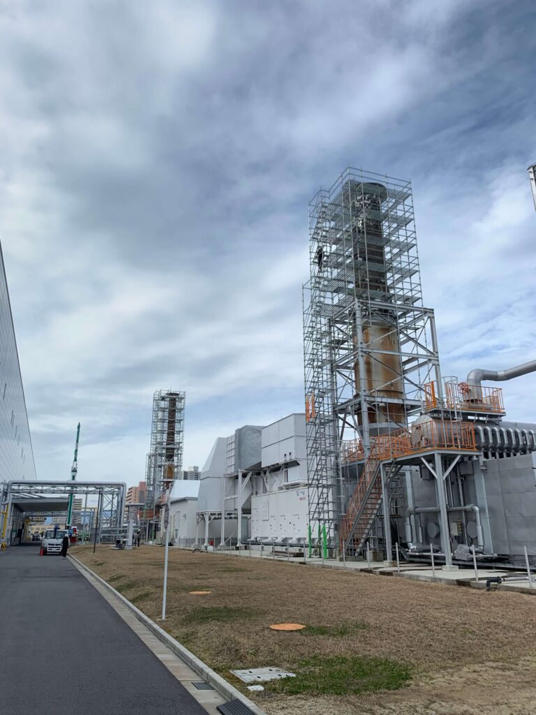 某工場の現場にて煙突メンテナンス用足場を組ませて頂きました。
